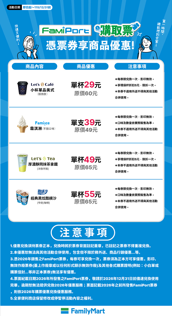 歡迎依下列說明,至指定通路進行2026票券優惠兌換。