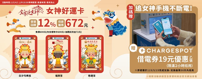 ✔ 加贈CHARGESPOT行動電源租借 $19 折抵