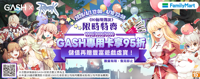 《RO仙境傳說》限時特賣!GASH專用卡最低95折